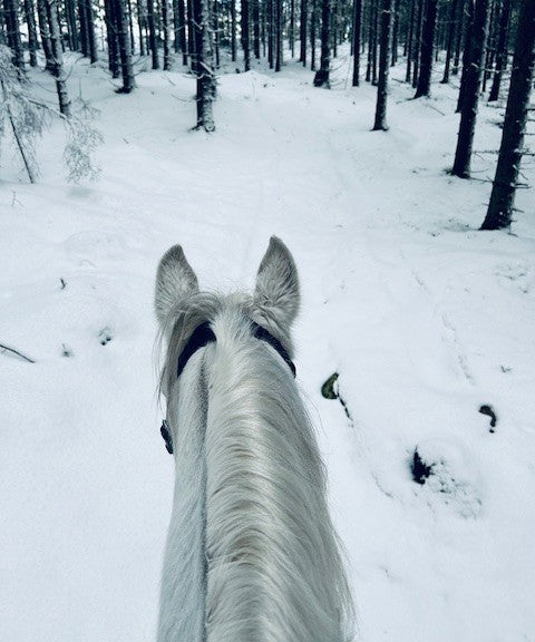 Det bästa med det var att jag plötsligt såg marken framför hennes hovar utan att behöva titta neråt med pannlampan och dessutom blända hästen.